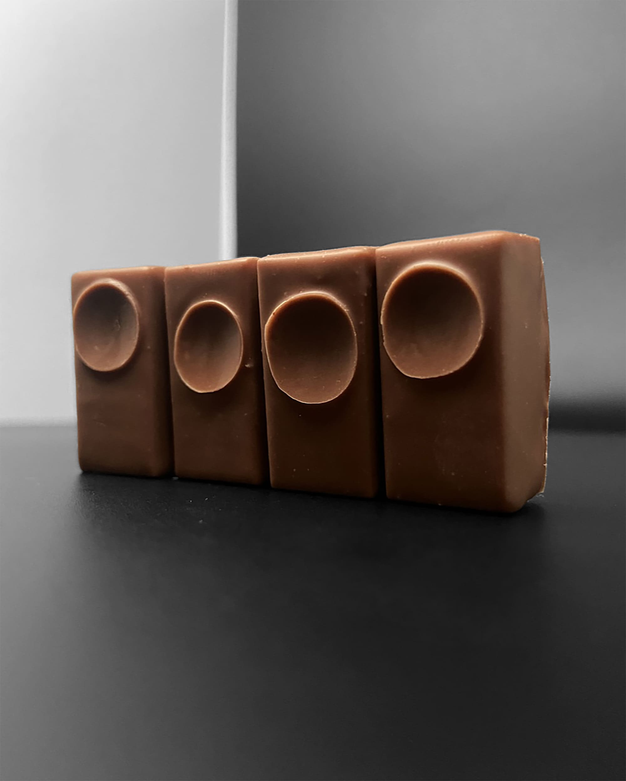 Moulage "chien" en chocolat, chocolat blanc, dulcey, au lait ou noir