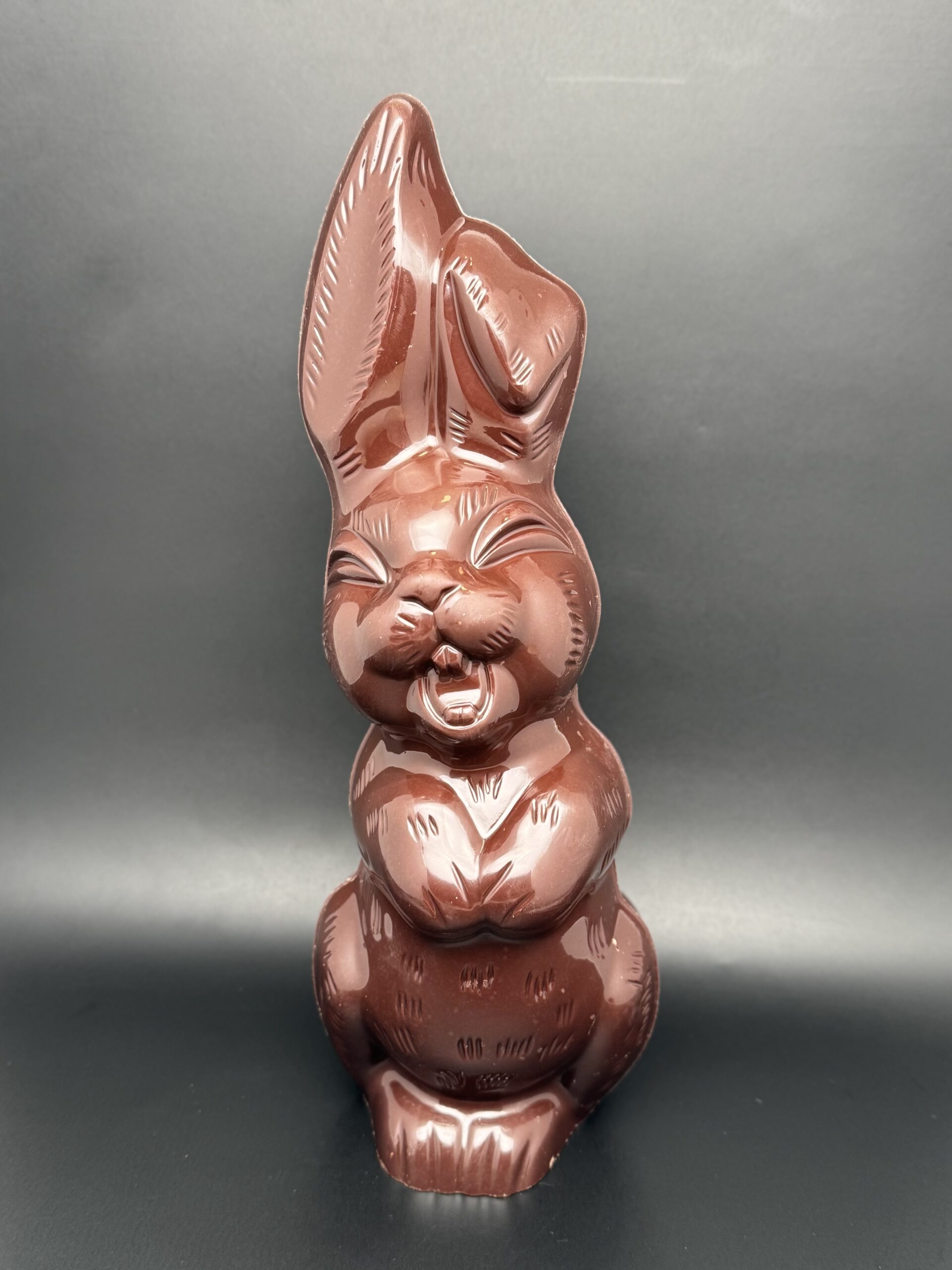 Moulage « Grand Lapin Classique » en chocolat blanc, dulcey, au lait ou noir.