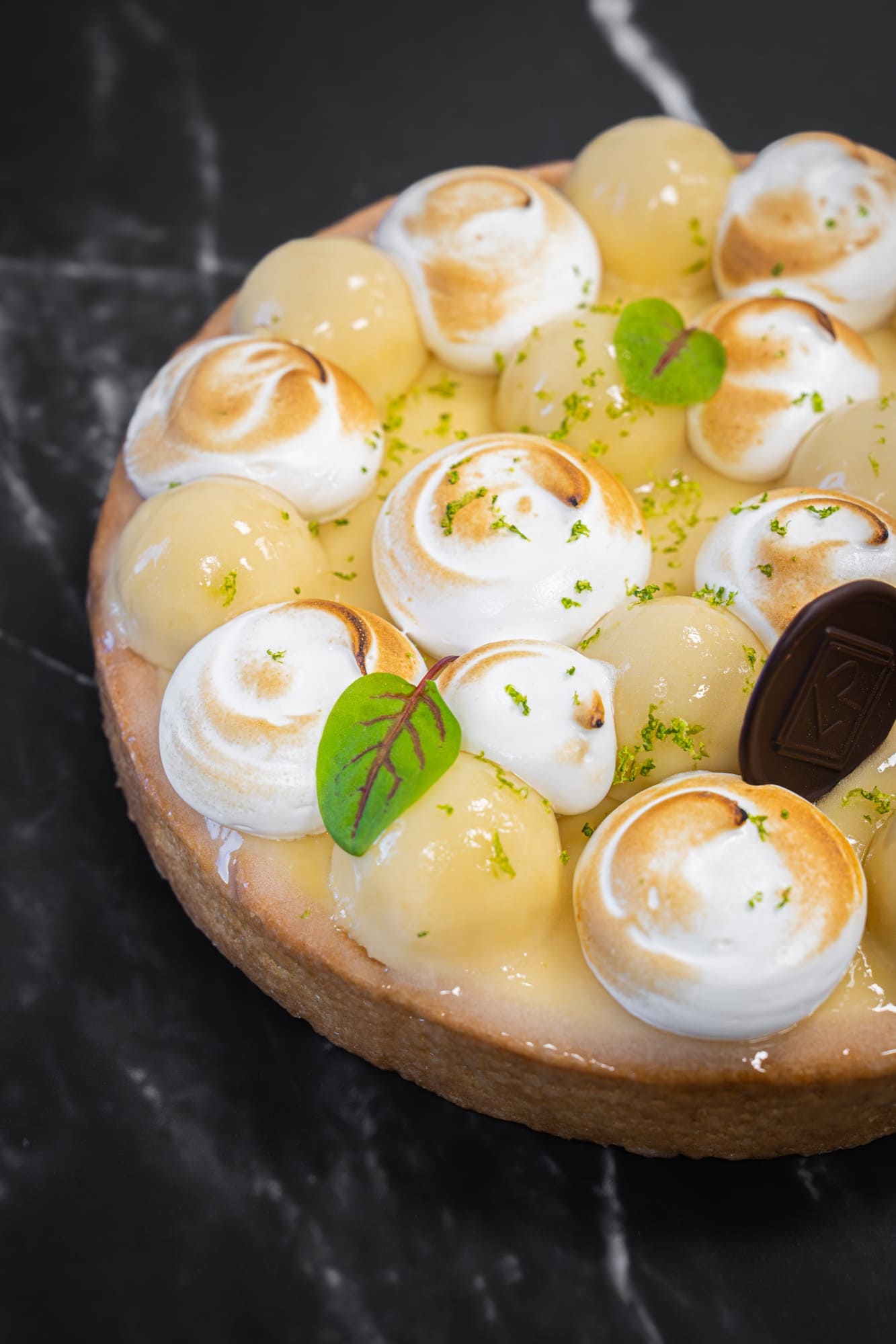 Crémeux intense aux citrons Meringue suisse flambée Pâte sablée aux amandes