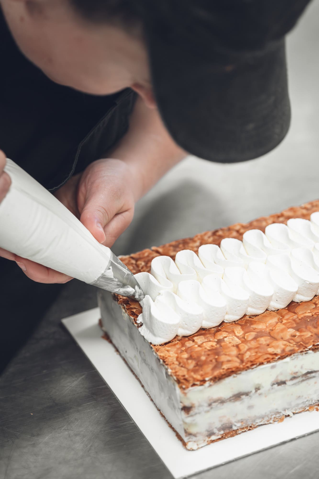 Le 1000 feuilles Pâte feuilletée caramélisée (Beurre Montaigu AOP) Crème diplomate légère à la vanille Chantilly à la mascarpone